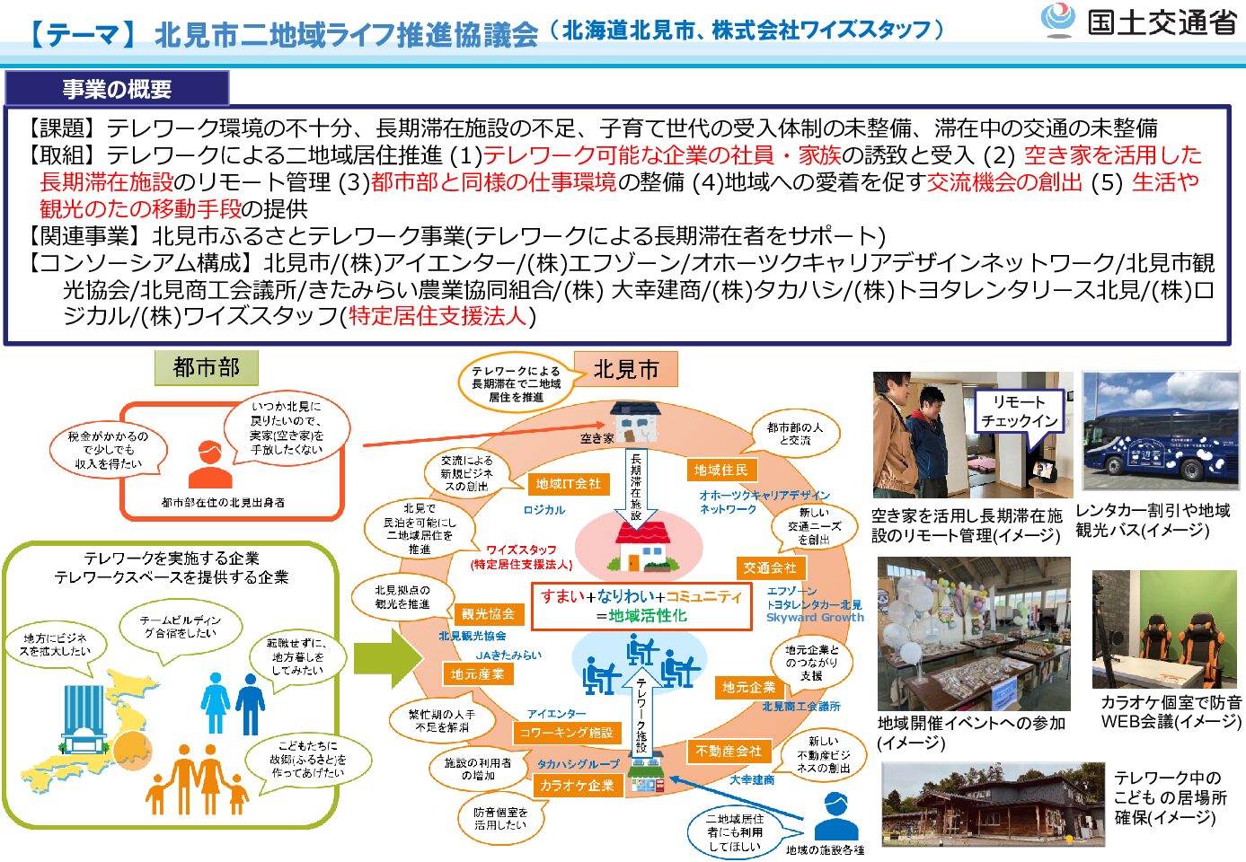 行政と民間が連携し、「住まい・なりわい・コミュニティ」を一体的に支える二地域居住モデルを構築しています。