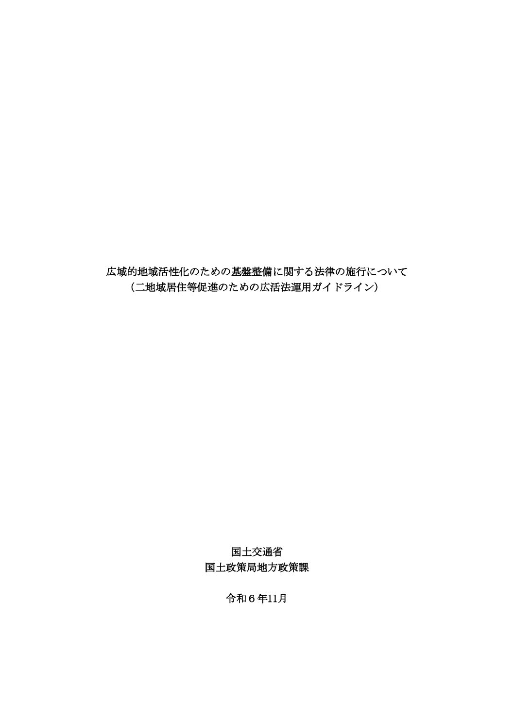 本ガイドラインは、広活法の改正趣旨に従い、都道府県及び市町村において同法の円滑かつ適正な運用が図られるよう、国の考え方や運用に当たっての留意点等を示すものである。