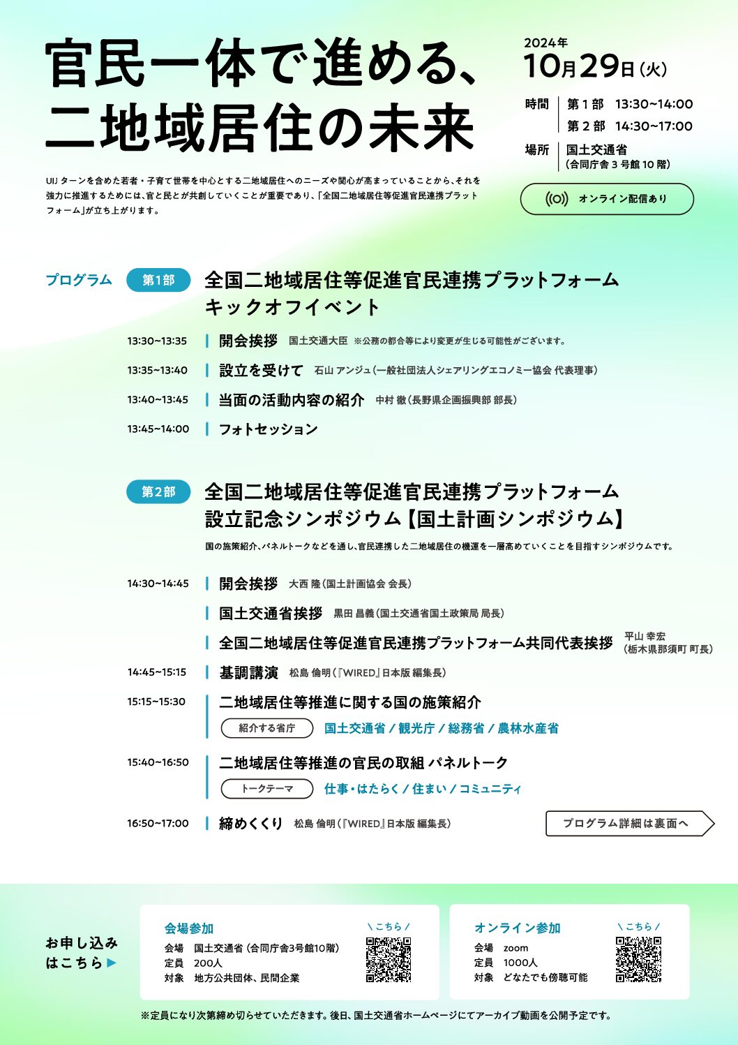 ○第Ⅱ部 全国二地域居住等促進官民連携プラットフォーム設立記念シンポジウム【国土計画シンポジウム】