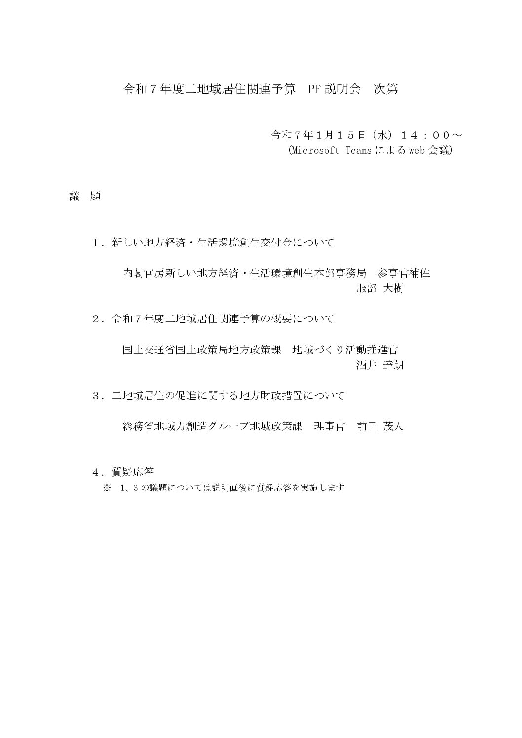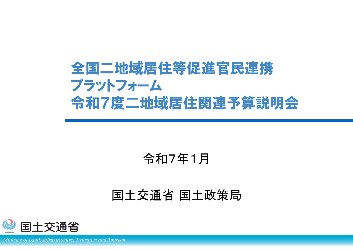 1月15日に、国交省による本プラットフォーム会員向けの「令和7年度二地域居住関連予算説明会」が、オンライン形式で開催されました。