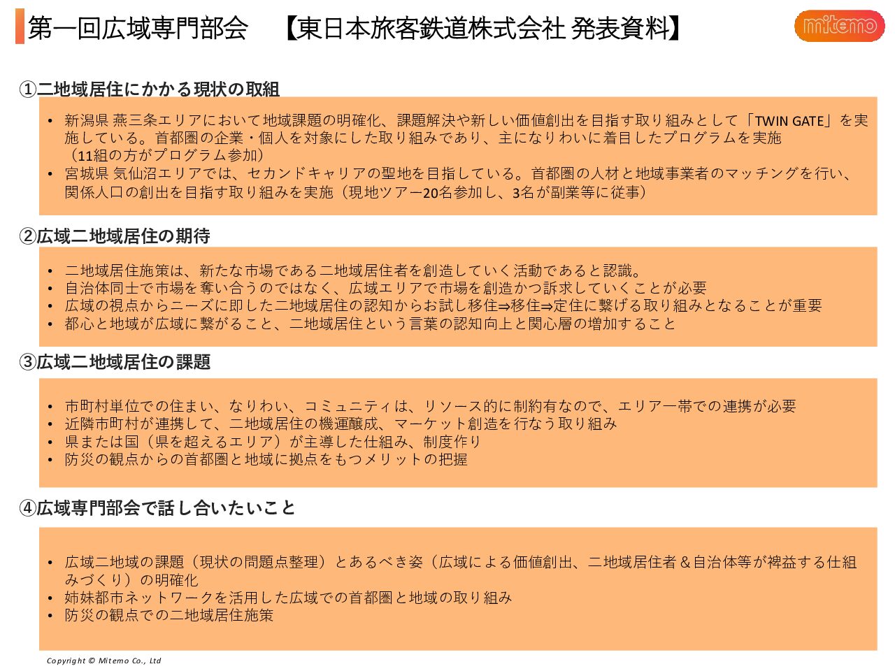 第1回部会では、広域二地域居住を取り巻く現状や制度上の課題を共有するとともに、各主体の立場から見た広域連携に対する「期待」と「課題」について意見交換を行い、今後の部会で検討していく論点について議論を行いました。