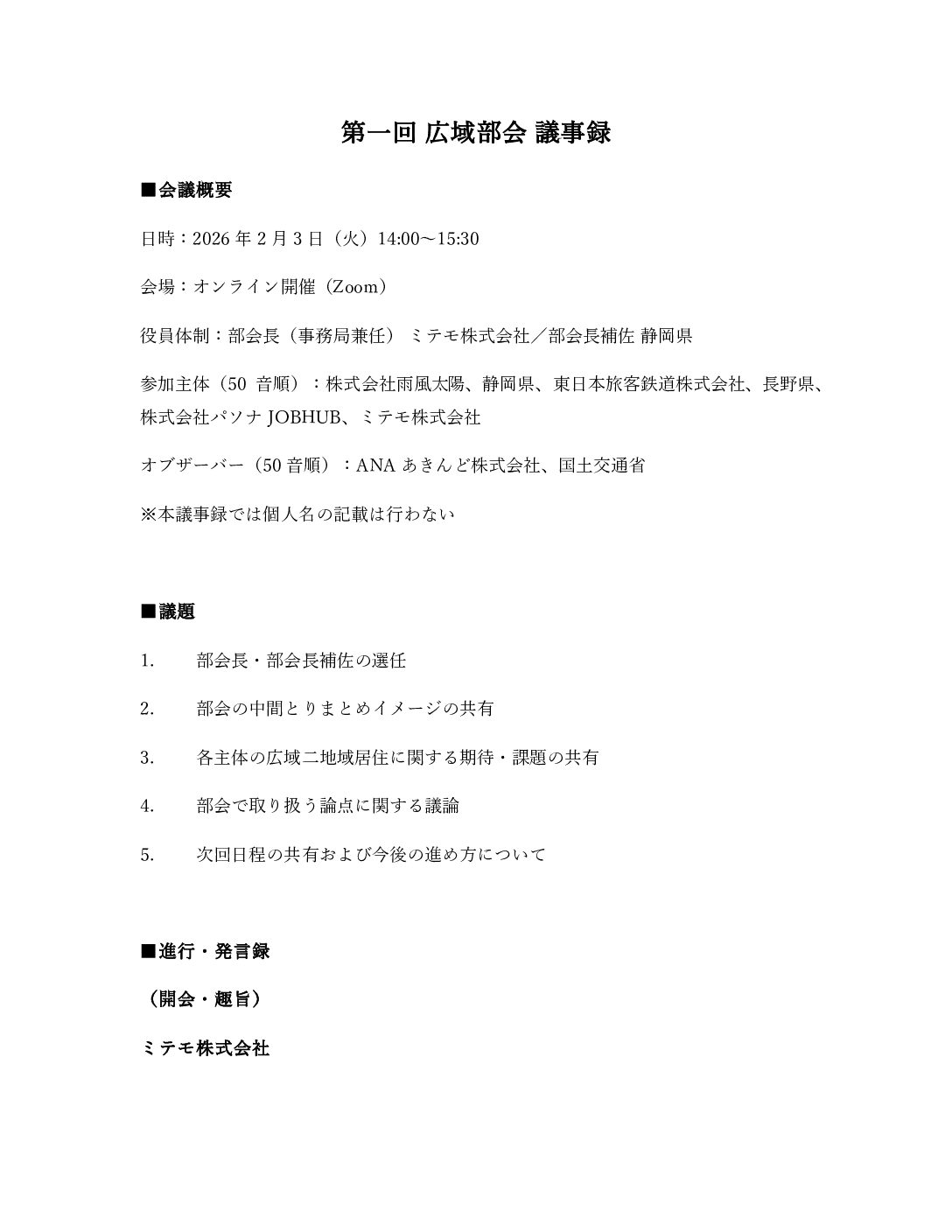 二地域居住のさらなる促進に向けて、自治体の枠を越えた広域的な連携のあり方や制度上の課題について検討するため、「広域部会(令和8年度 第1回)」を開催しました。